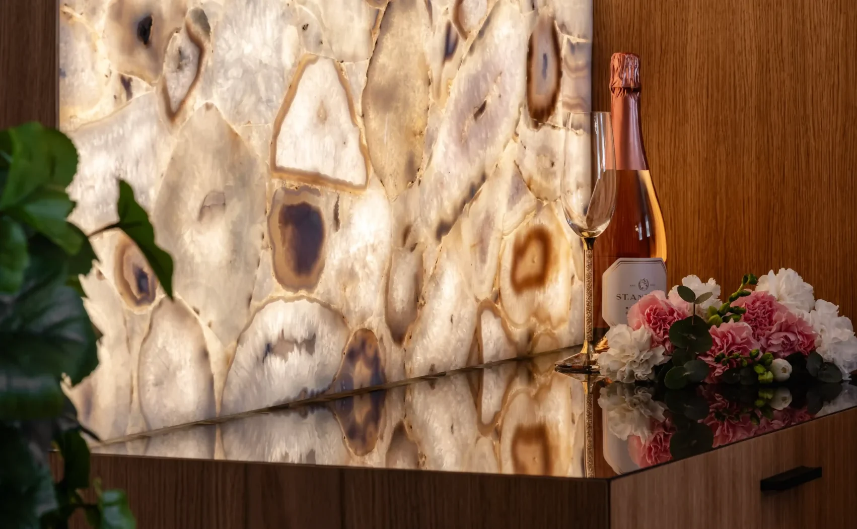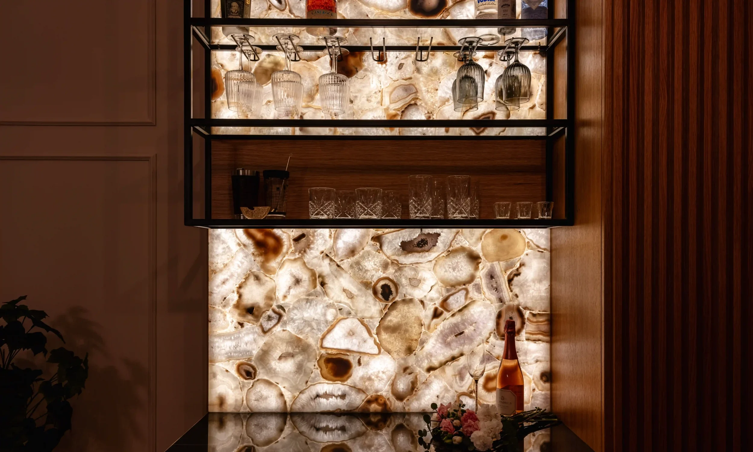 A Crystal Agate áttetsző rétegeivel és természetes mintázatával különleges mélységet ad a térnek. Háttérvilágítással igazán látványos, a fény kiemeli kristályos struktúráját és finom színjátékát, így elegáns, exkluzív felületek hozhatók létre.