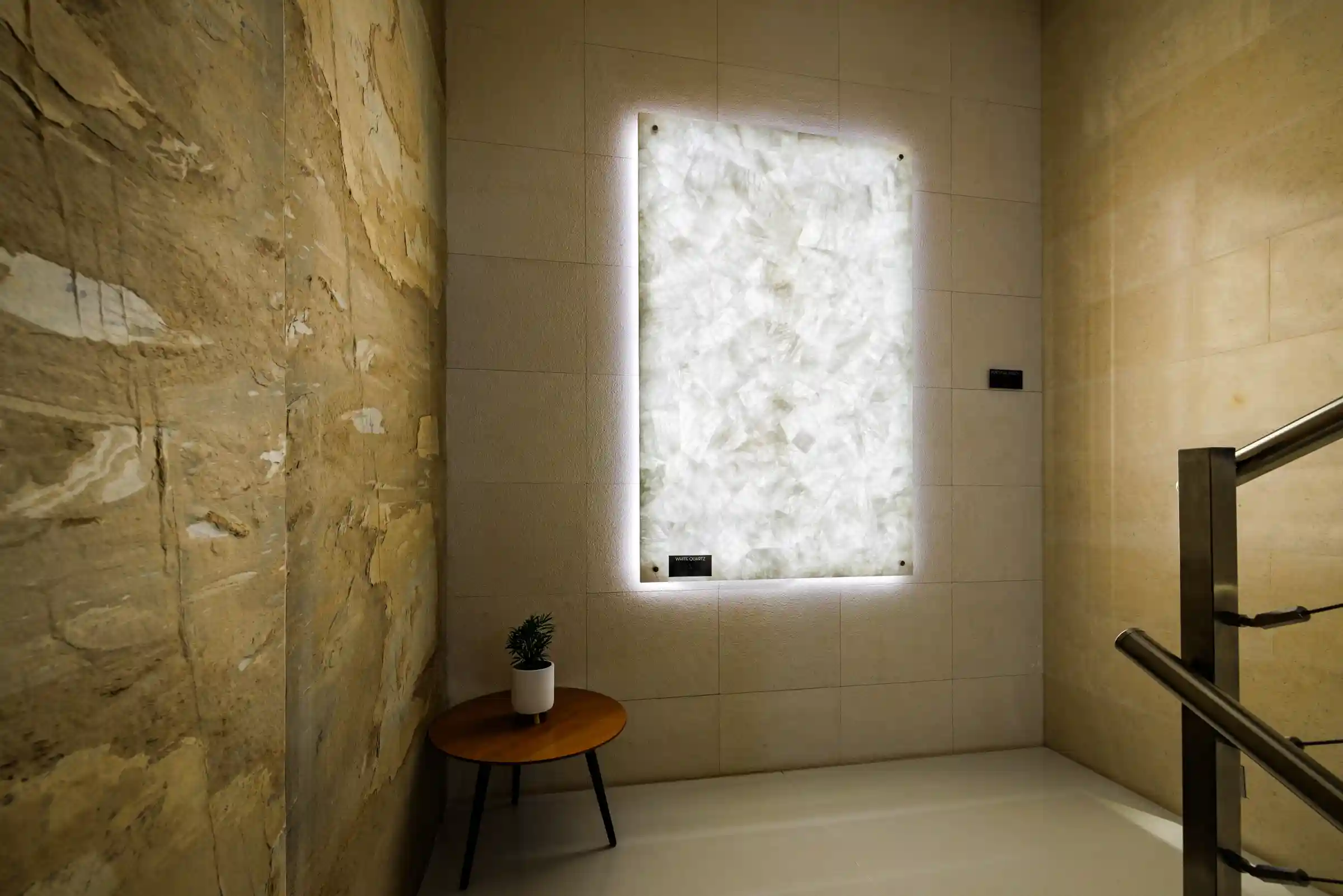 A White Quartz a fény és a kő tökéletes találkozása. Kristályos szerkezete háttérvilágítással életre kel, finom rétegein lágyan átszűrődik a fény, exkluzív és időtlen atmoszférát teremtve. Letisztult, mégis karakteres felület, amely fókuszponttá emel bármely prémium enteriőrt.