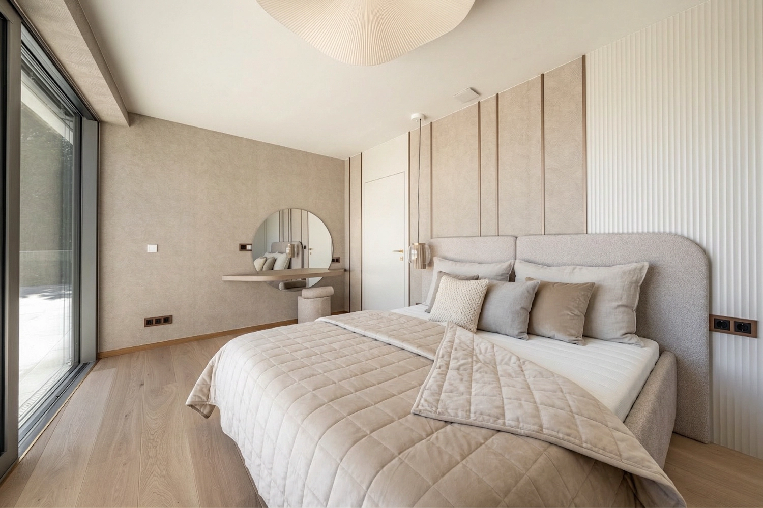 Az összhatás egy modern, mégis meleg hangulatú enteriőr, ahol minden részlet a minőségről és az időtálló designról szól.
