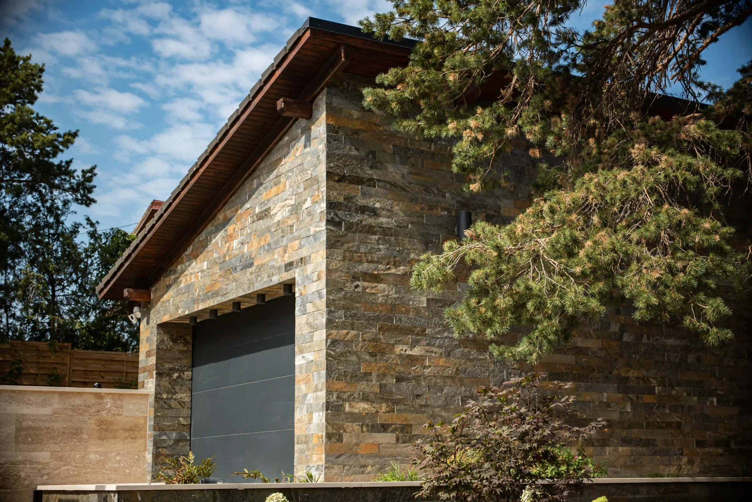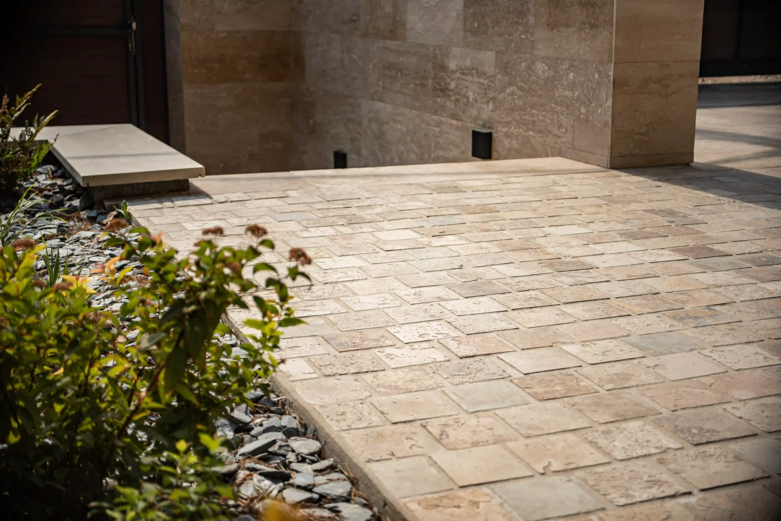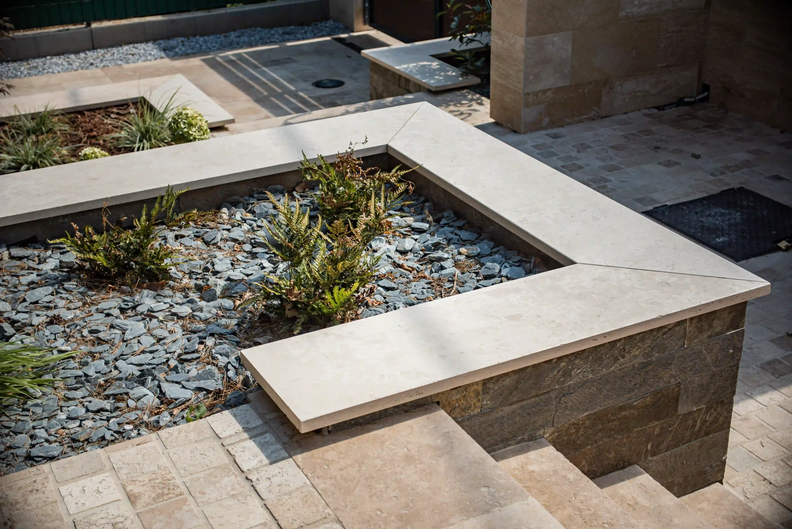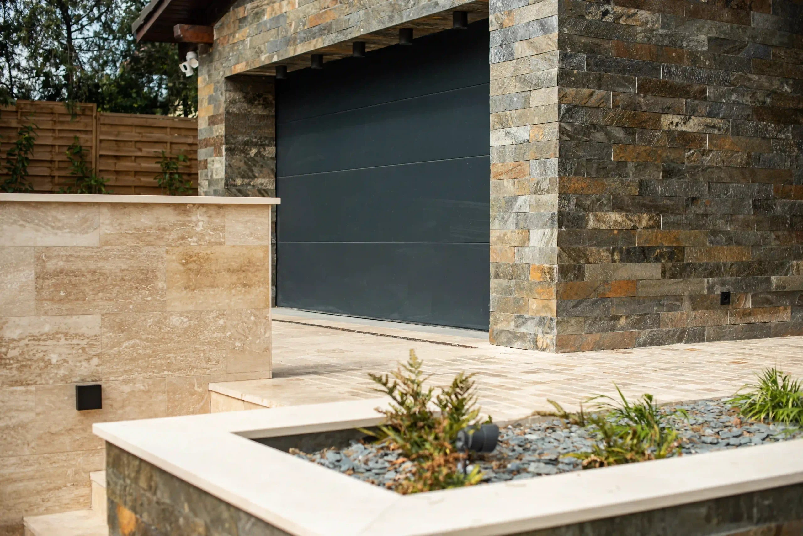 Ez az exkluzív, földszintes családi ház Érden tökéletes harmóniát teremt a modern design és a természetes anyagok között. A homlokzatot a letisztult Light travertin és a karakteres Deoli Green kvarcit díszíti, míg a kocsibehajtókon és járdákon koptatott travertin biztosít időtálló, stílusos megjelenést. A fedlapok szintén travertinből készültek egyedi méretben, elegáns egységet alkotva az épület egészével. Egy otthon, ahol a természetes szépség találkozik a modern építészettel!