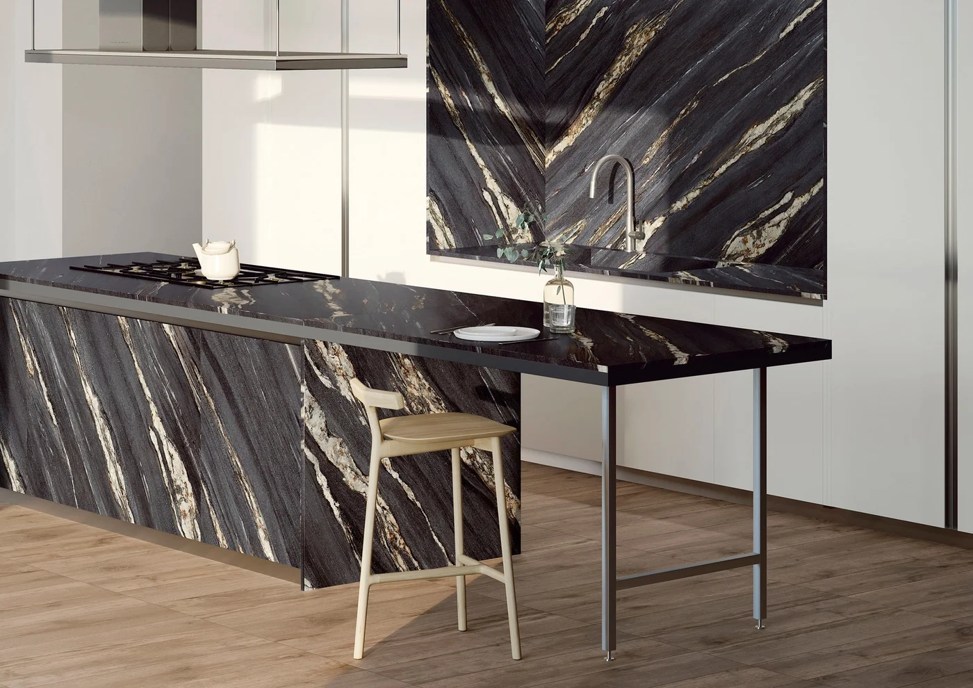 A Kuroca 4D a fekete márvány luxusát hozza el mély, intenzív alapárnyalattal és gazdagon rétegzett, arany–bézs erezettel. A 4D technológia élethű struktúrát és valódi kőhatást biztosít, így a felület lenyűgöző mélységet és eleganciát sugároz. Karakteres, drámai megjelenése ideális fókuszpont modern és exkluzív enteriőrökben. A kerámialap kivételes ellenállóképessége — hő-, karc- és foltállóság — garantálja a tartósságot még intenzív használat mellett is.